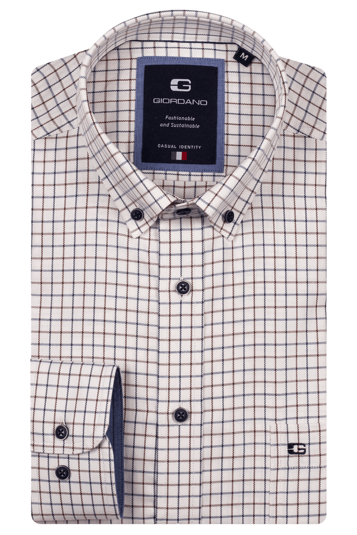 Giordano Brando Men's 100% Cotton Twill Classic Check Button Down Shirt
