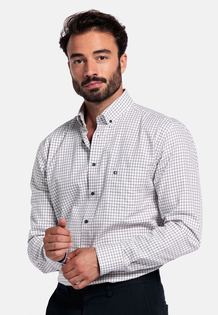 Shop the A/W 2025 Brando long sleeve shirt. Made from 100% premium soft cotton twill in a classic brown check or red pattern. This versatile Regular Fit button-down is an essential for autumn and winter layering
