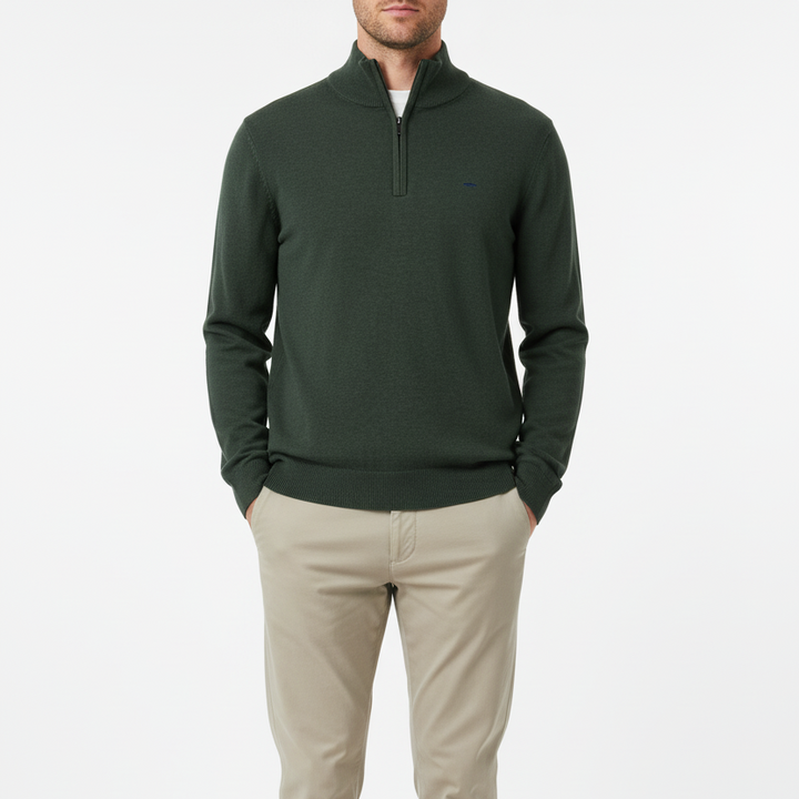 Fynch-Hatton Troyer-Zip, Superfine Cotton Jumper – Dark Ivy