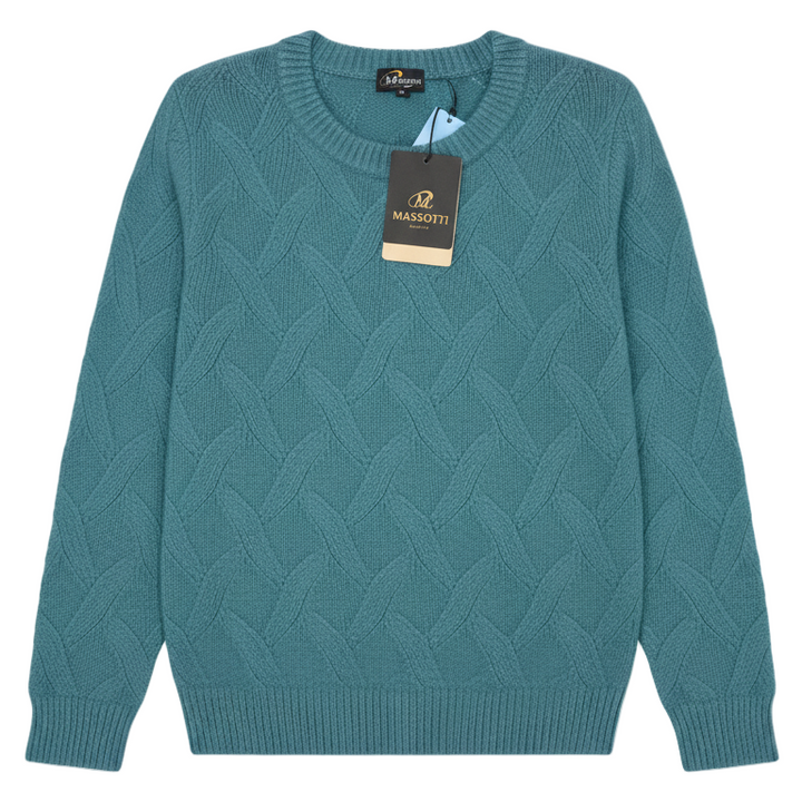 Elevate your autumn and winter wardrobe with the Massoti Chunky Knit Cross Weave Jumper. This premium sweater is the perfect blend of substantial warmth and sophisticated, modern texture.