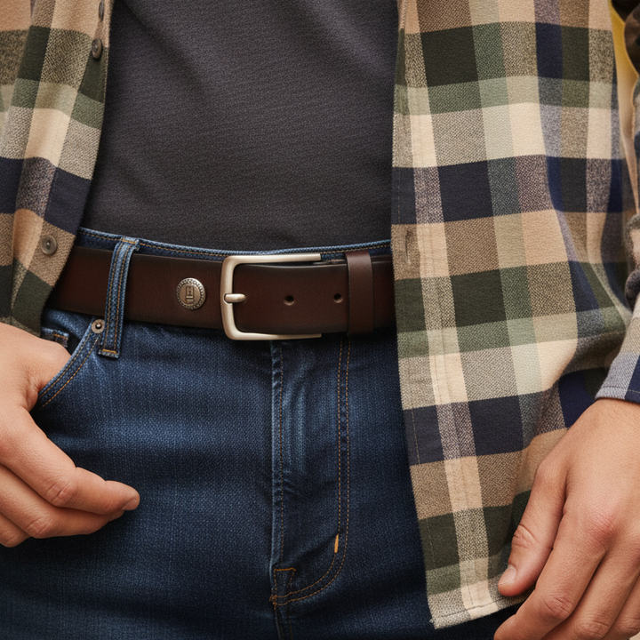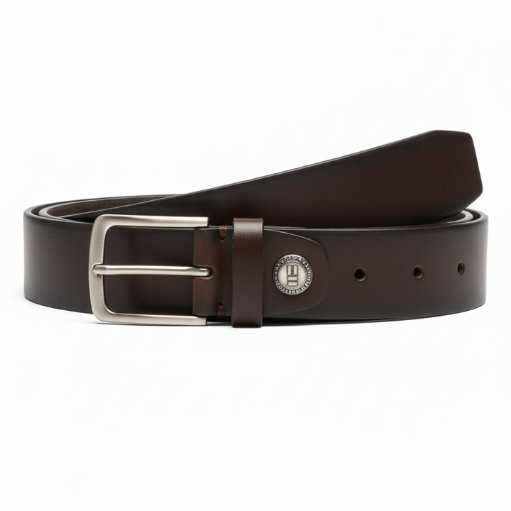 Elevate your everyday style with this Miguel Bellido Genuine Leather Belt. Expertly crafted in Spain, this premium men’s belt is made from 100% genuine leather, offering a smooth finish and long-lasting durability. The rich brown tone pairs effortlessly with casual jeans or tailored trousers, while the brushed silver buckle adds a refined, timeless touch. A discreet embossed Miguel Bellido emblem completes the look, making it the perfect accessory for those who appreciate classic craftsmanship and understated elegance.