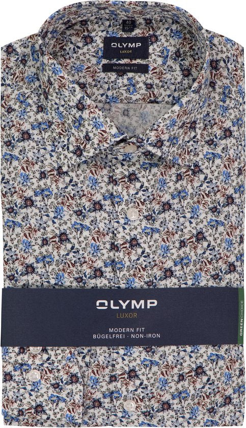 OLYMP men's shirt made of 100% cotton. The Multicolor Fantasie model features a Kent collar, long sleeves, and a button placket. It's perfect for both business and casual wear. The use of natural materials ensures high wearing comfort. The fabric of this shirt is soft against the skin, breathable, and offers maximum moisture absorption. An ideal shirt for him.